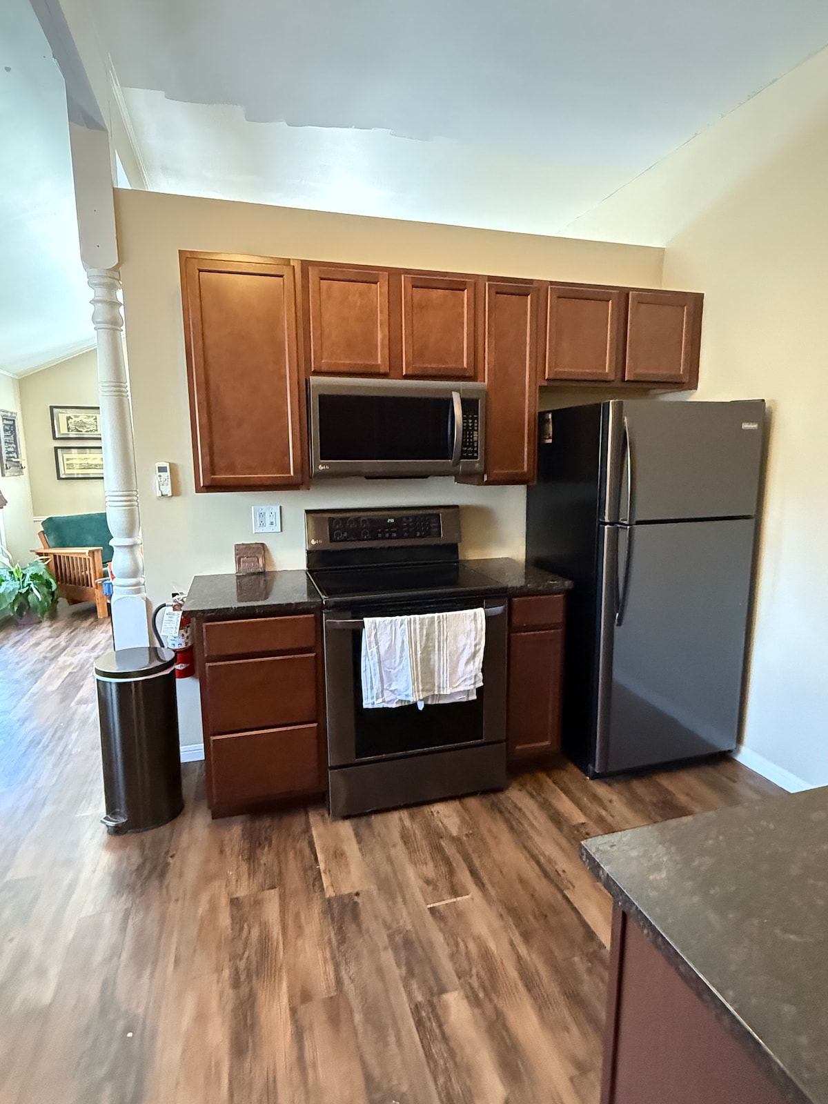 ✦ A modern, but cozy, 600-sq.-ft. Barndominium with full kitchen and bath, one king bed, living room, closet, Amazon, Netflix, Disney+,Roku, and fast WiFi. We built the barndo in 2022, and furnished it for Airbnb. We have a Roku TV in the living room as well in the master room configured with a Amazon and Netflix set up application, which gives you access to the network, This also allows you to log into your own streaming services such as , Hulu, HBO, Cinemax and so on.