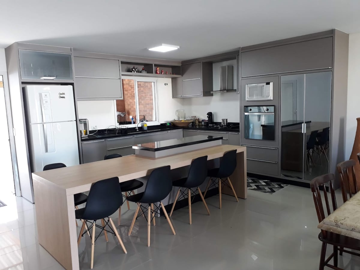 Welcome! Your family will be close to everything when you stay at this centrally-located house. The house is new and is close to the Central Square, the Mother Church, the Lovers' Square, markets, banks and only 5 minutes from the beach by car. The house is also cozy and has space to have a barbecue with friends. It has three bedrooms, one of which is a suite. New property. The address is Rua Monsenhor Lamartine, 290, Centro - Guaratuba.
