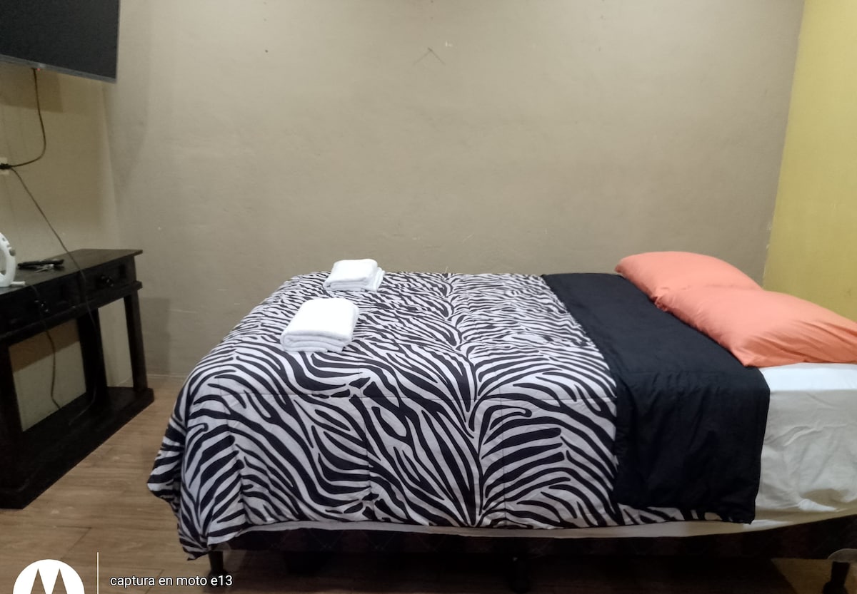 Enjoy a comfortable and functional stay in this compact room, designed for your comfort. Despite its size, it has everything you need to feel at home. It is a small but well thought out space! ✨ Includes: ✔ Comfortable bed 🛏️ ✔ Equipped cook 🍳 60 ✔ "TV 📺 ✔ A/C ❄️ ✔ Hot water 🚿 Ideal for travelers looking for comfort and functionality in one space.