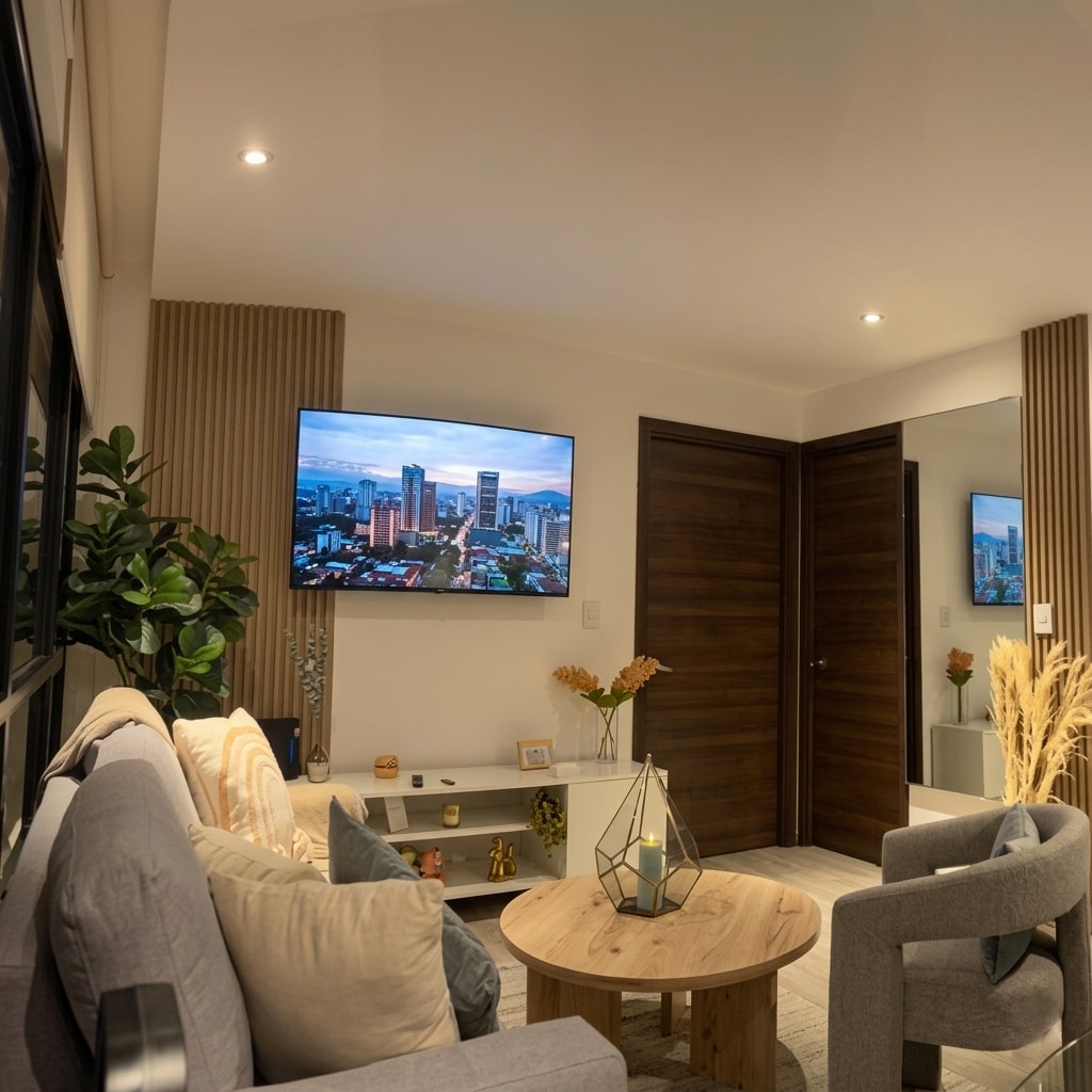 🏙️ Experience Guatemala from the 23rd floor in a modern apartment with a private balcony and stunning city views. Perfect for couples or solo travelers seeking style and location. 📍Located in the heart of Zone 10, just minutes from the airport and steps from Oakland Mall, surrounded by restaurants and nightlife. 🛋️ Fully equipped kitchen, fast WiFi, Smart TV. 🏢 Pool, gym, meeting room, and 24/7 security. 🛬 Ideal for tourism or business travel.