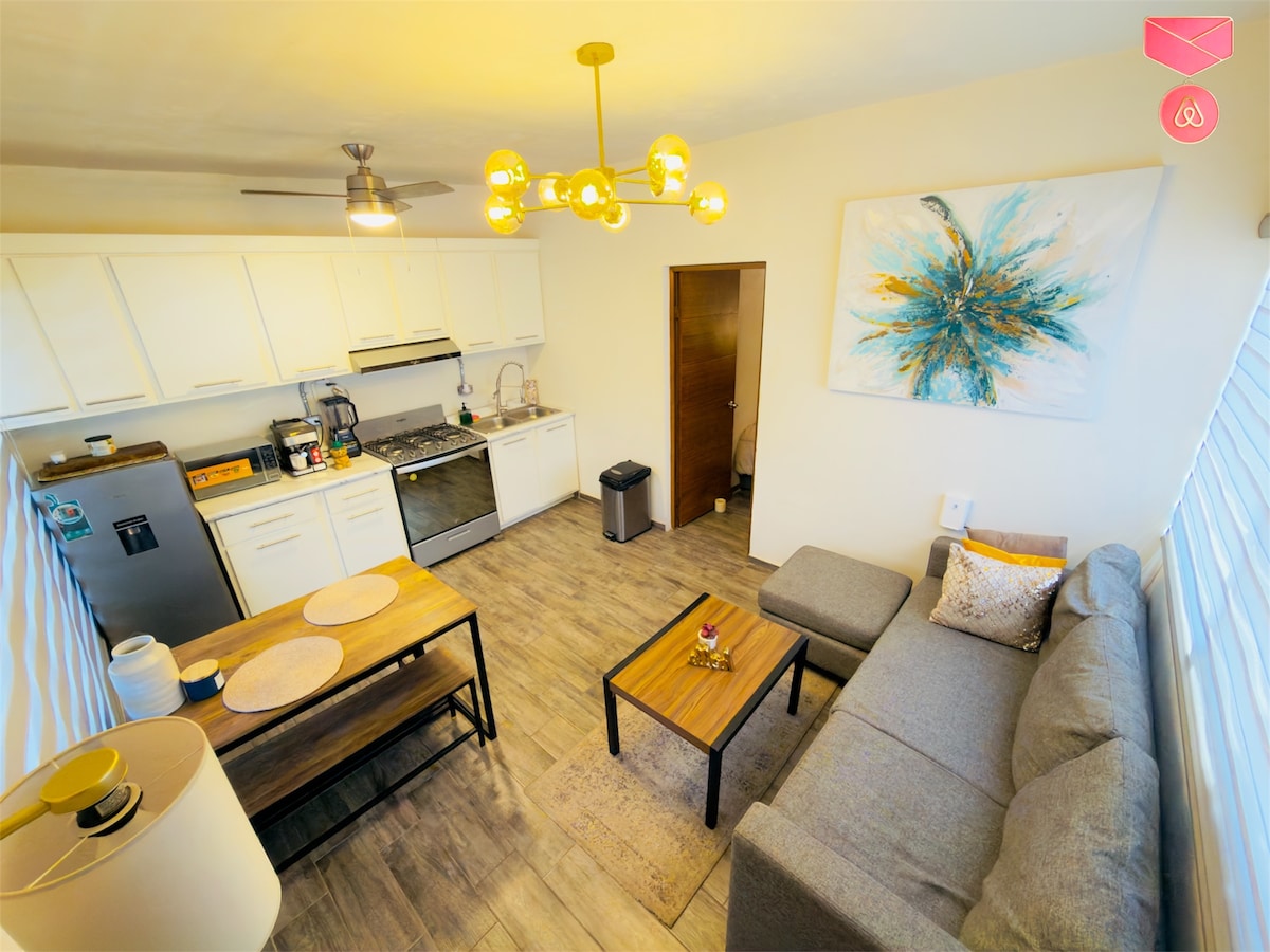 Hemos Diseñamos un Departamento para que sea fácil, cómodo y práctico para usted! Espacio para hasta 4 personas, Ubicación céntrica, acceso por códigos, privacidad absoluta! Además Como cortesía en todos nuestros hospedajes: Kit mañanero: Café y harina para wafles "Just add Water".