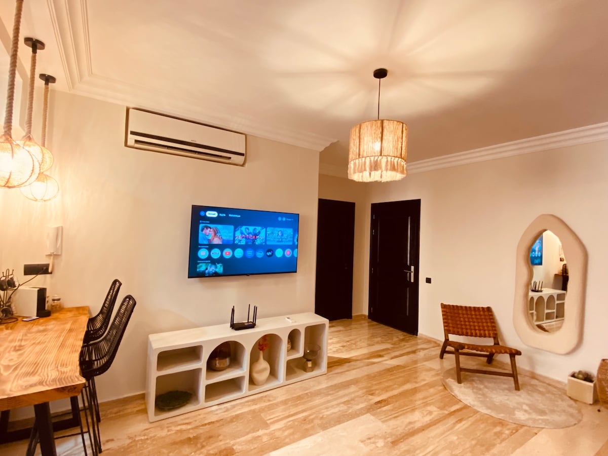 Experience the charm of Marrakech in this stylish apartment, centrally located in the vibrant Hivernage area. A unique blend of traditional craftsmanship and modern comfort, featuring handmade furniture sourced from the Atlas Mountains. Designed by an artist. With a welcoming atmosphere. Whether you’re exploring the nearby cultural attractions or enjoying the vibrant local scene, this well-appointed apartment serves as the perfect base. Enjoy the convenience of staying in the heart of Marrakech