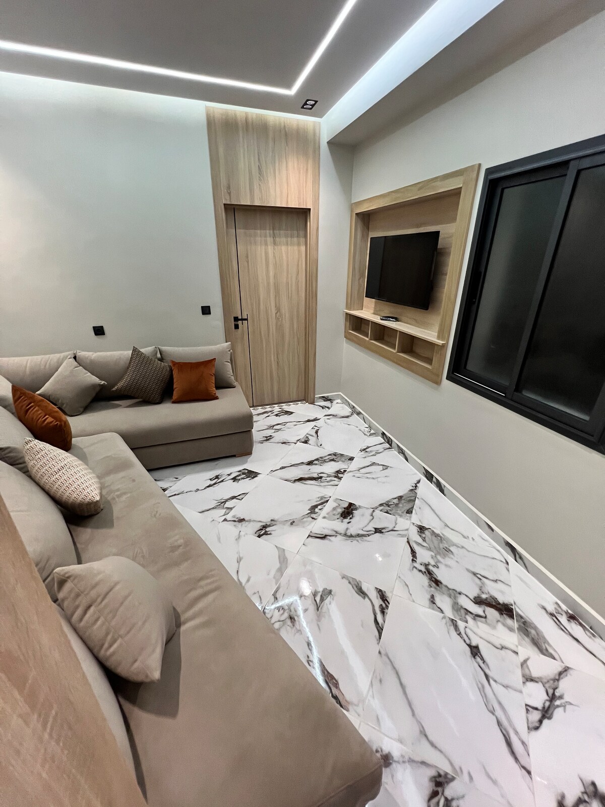 Welcome to our high-end apartment, ideally located just 10 minutes from the beach, 2 minutes from the airport and close to the most beautiful sites of Tangier: 20 minutes from the cave of Hercules, 30 minutes from Cap Spartel and 20 minutes from the city center. This modern and elegant accommodation offers all the comforts necessary for an unforgettable stay. Whether you are on a business trip, with family or on a romantic getaway, this haven of peace is the ideal place to enjoy Tangier with complete peace of mind
