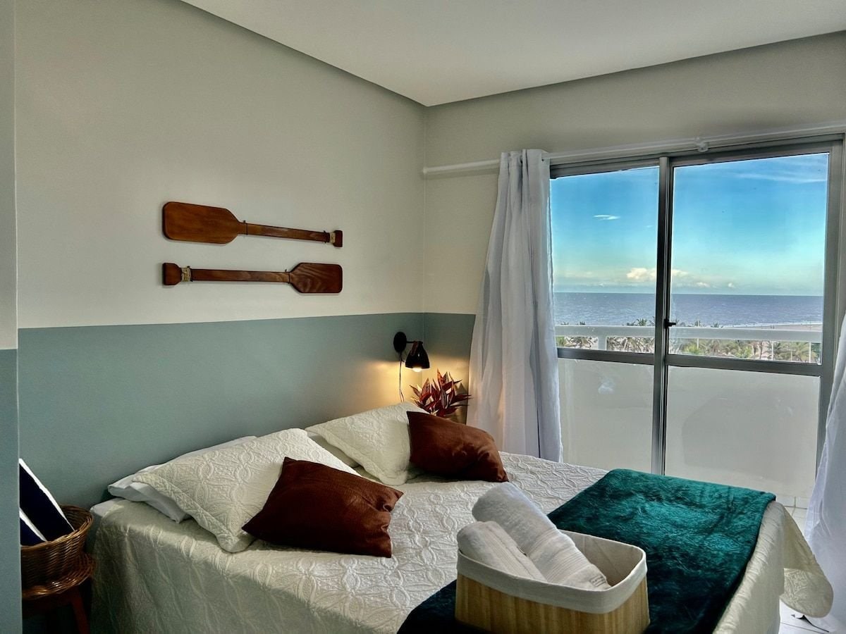 Large apartment with 1 en-suite and 1 bedroom, bathroom, kitchen, living room and a balcony with spectacular sea and waterfront views. The suite has a box king bed and split air conditioning. The room has 2 foam bikes (they can join) and air cond. split. The condominium has a swimming pool and barbecue pit in the common area and offers a parking space. With a great location close to restaurants, bars and beach stalls on the waterfront and 8 km from the Historic Center.