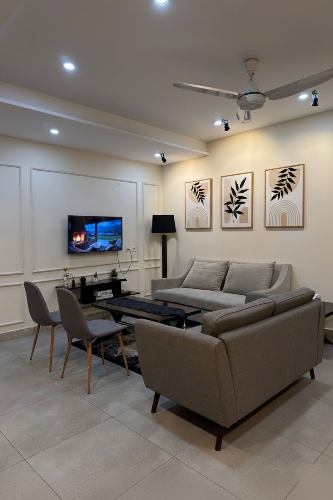 Welcome to Daró — a boutique, design-forward 1-bed apartment in the heart of Zameen Aurum, Gulberg III. Thoughtfully crafted with soft tones, modern furnishings and a calm hotel-like ambience, this space offers a private balcony, a stylish lounge with a 55” LED, a fully equipped kitchenette, fast WiFi, fresh linens, and 24/7 hot water. Ideal for married couples, business travelers, weekend escapes and long-term stays seeking comfort, convenience and a truly elevated experience in Lahore. 🌙✨