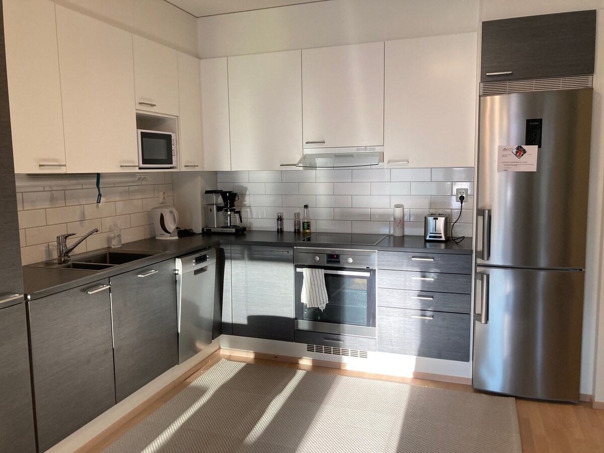 Take it easy at this unique getaway and enjoy your stay in this fairly new 34 m2 condo & studio (+13 m2 balcony). Calm neighborhood with excellent transportation connections makes accommodation comfortable and makes you feel like home. The bus stops are located right near near the apartment and the metro station is only a 5-minute walk away (450 meters from the apartment) which takes you to the city center within 12 minutes.