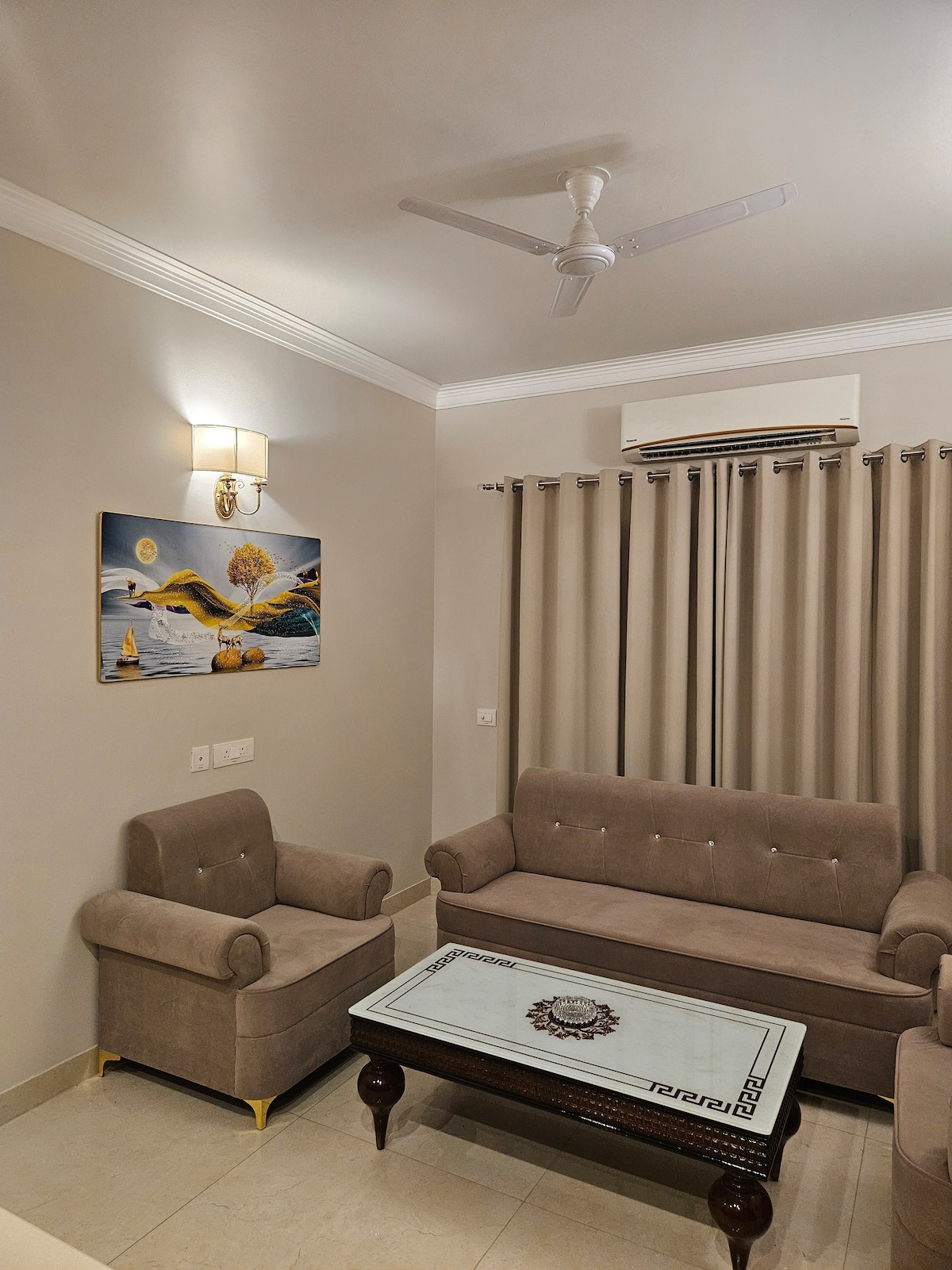 Newly opened 1BHK in Sector 52, Gurgaon with AC in bedroom & living room, washing machine, and a kitchenette with induction, microwave & utensils. Near Artemis Hospital, Huda Market, Millennium City Centre Metro & High Street 52 Market. Ideal for business, medical & leisure stays, welcoming local & international guests. Early check-in will be subject to availability and chargeable Rs.500 as well as late checkout will also be the same with ₹500 added for every 3 hrs thereafter.