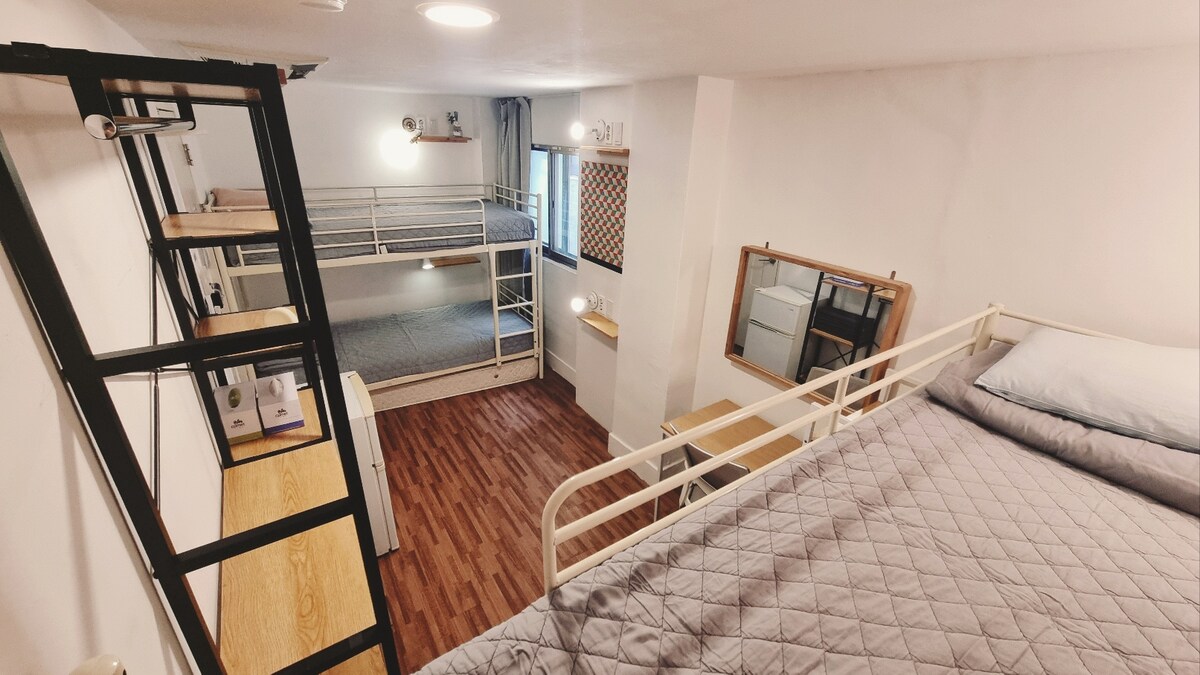 [Open Discount] Airport bus 5 minutes. Hongdae/Ittaewon/Myeongdong 20 minutes. Private bathroom. Free luggage storage. Shared laundry, dryer, kitchen