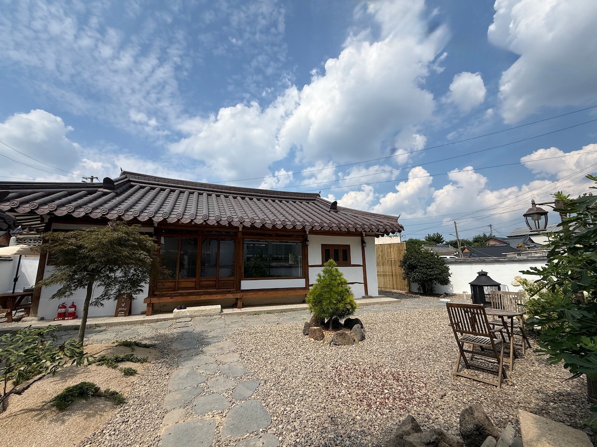 Take a break with the whole family in a peaceful accommodation. In the evening, watching the sunset, barbecue in the spacious yard and Time for a fire pit. In the morning, open your eyes to the sparkling sunlight and the sound of birds Heal yourself while drinking drip coffee. When it rains, the rain falls at the end of the eaves. While watching, having a leisurely time Erase the accumulated stress. And Hwangridan-gil (within 5 minutes by car, about 15 minutes by slow walk) and the central ruins are all within a short distance!