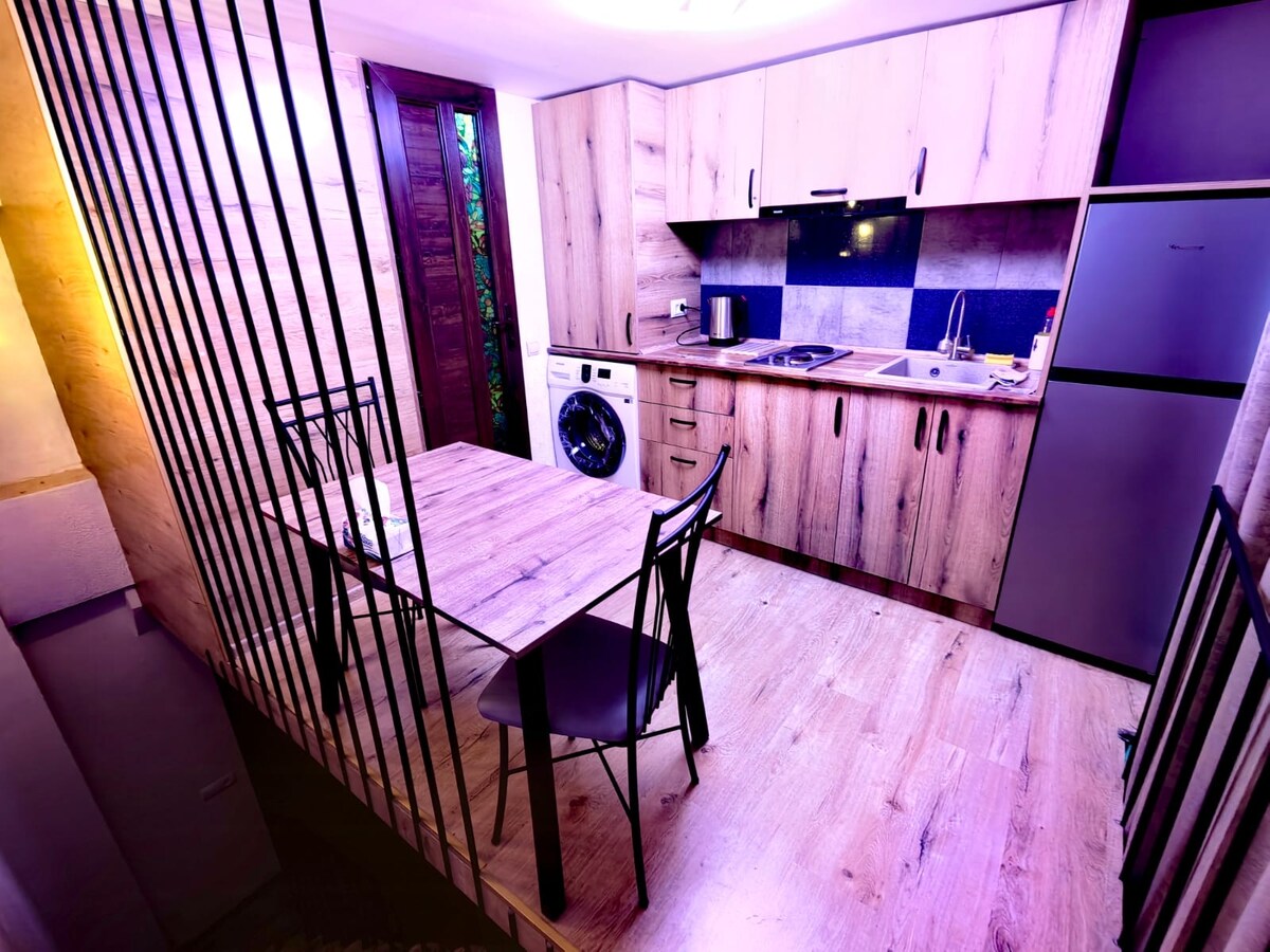 Очаровательный дом в стиле Гюмри, в самом сердце города! Площадь дома составляет 45 кв. метров,сочетает в себе теплоту старинного стиля и современные удобства. Полностью укомплектованная кухня оснащена всеми необходимыми удобствами, такими как тостер, кофемашина, чайник, холодильник, стиральная машина, утюг и гладильная доска. В ванной комнате есть освежающий душ, предоставляем все необходимые предметы для личного ухода, включая расчёску, зубную щётку, фен. Диван в гостиной раскладной.