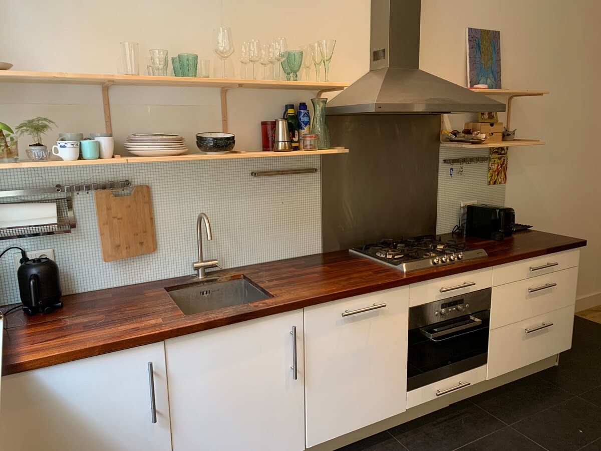 Townhouse M&F is located near the city center of Haarlem (2 min), walkable distance from the dunes and bikable distance from the sea. It has two bedrooms with down duvets and pillows, a living room, a kitchen and a bathroom with bath and separate shower. The apartment is totally renovated and has a new kitchen. It has full privacy. It is located close to the railroad and the railway station, Amsterdam Central Station only 15min. The apartment is on the first floor.