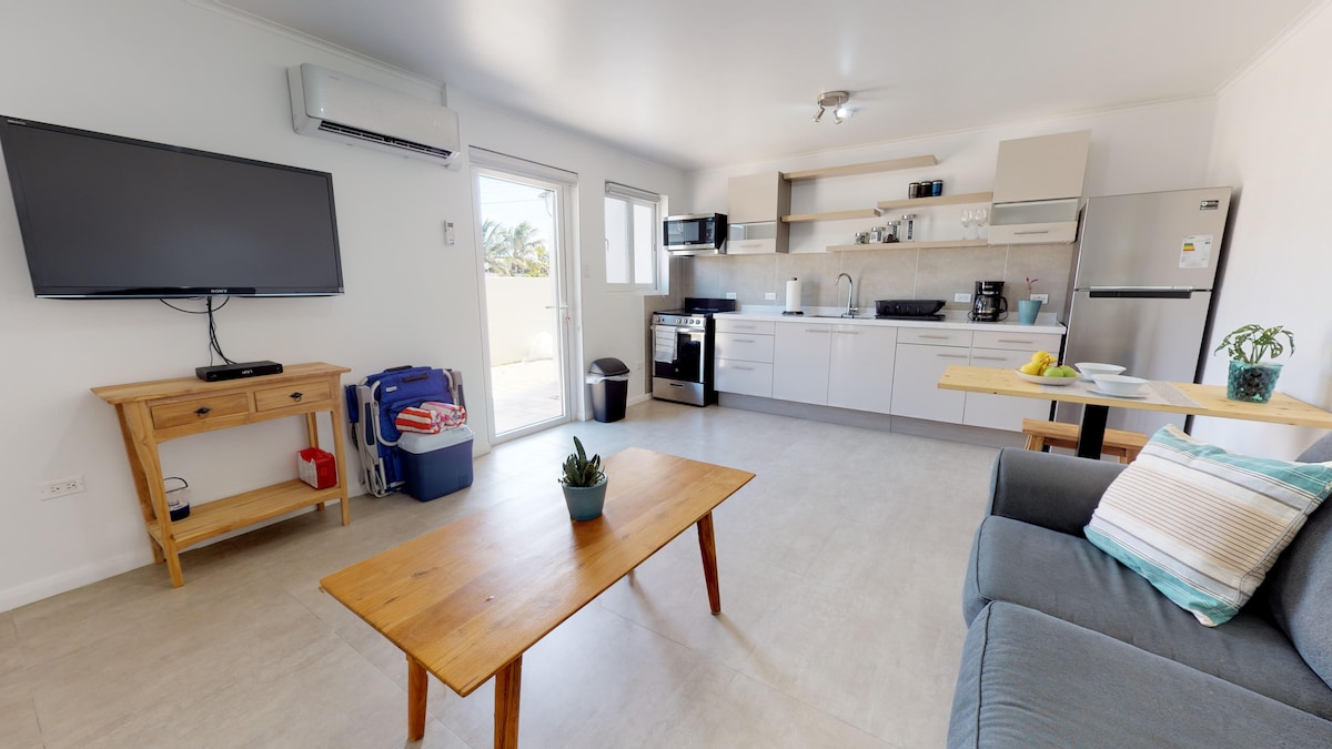- Brand newly renovated Unit for 2 people - With its own private pool + larger Pool on property. -Premium King Mattress -Full kitchen with Gas cooktop, living area -4 Other units on property but this has its own pool for this unit. -Across the street from Boca catalina one of aruba best secrets for snorkeling and relaxing -Located in "beverly hills of aruba" -We provide beach chairs and beach towels, and cooler. -Free Wifi -Plenty of free parking on-site