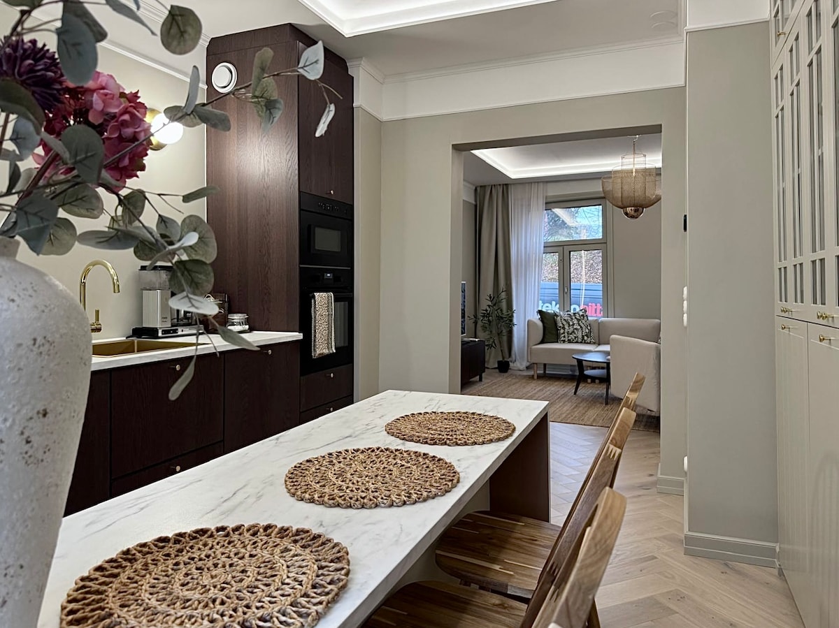 This new wooden apartment is for you if you are looking for a quiet and high-quality apartment. Check-in is effortless with a key box. The apartment has all the comforts of today, the windows flood in light and the atmosphere is created by wide plank floors and high room heights. The quality of the apartment is generally high. The driver gets the car in his own private parking space. The apartment has its own terrace, so you can enjoy your morning coffee outside. This apartment guarantees a great night's sleep!