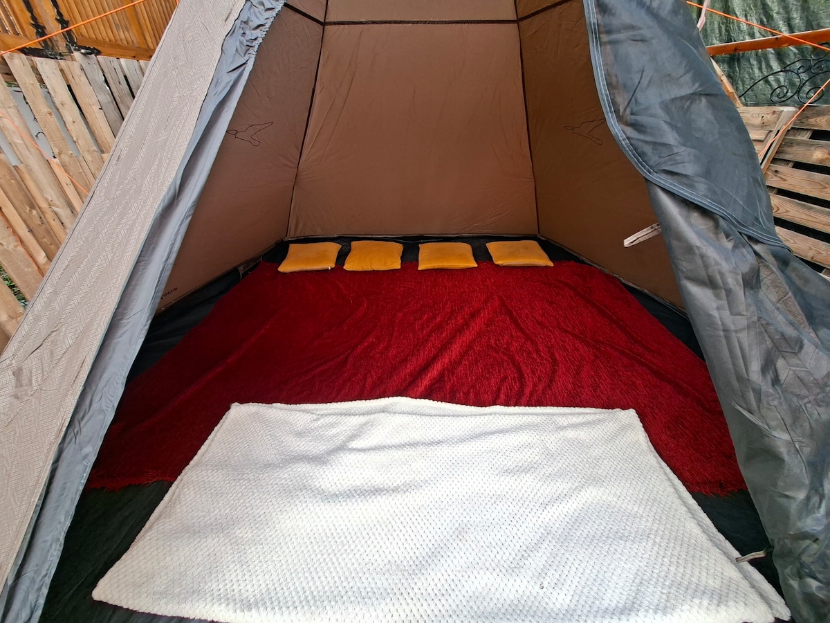 Enjoy the sounds of nature while staying in it, a unique haven for rest and tranquility. The tents in the garden offer alternative accommodation with excellent mattresses, while the cleanliness is impeccable. The place has private bathrooms in separate areas, outdoor showers and a shared terrace with magnificent views of the horizon. The sea is very close, ideal for diving and relaxation. In the garden there are also swings, a wood-fired oven, etc. In the same area, there is also the Erinele museum!!!