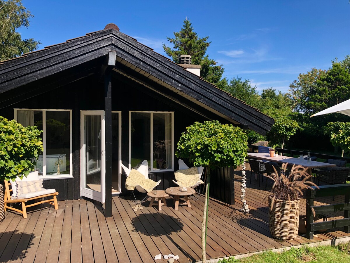 Welcome to this amazing and cozy cottage located on undisturbed natural land and with direct access to private beach. The house is decorated in modern beach house style – ”simple living” with a great amount of charm and a personal touch! The House is located on a 3.600 square meters plot, where the 2.000 square meters are beach and sea. The beach is private (though the public has access). But since it is private and there is no big parking lot you'll mostly have the beach to yourself!