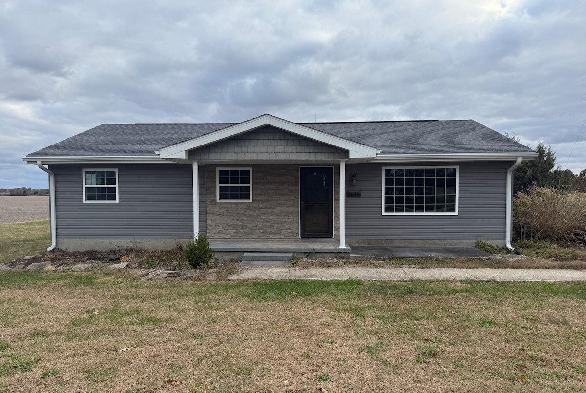 Relax with the whole family at this peaceful place to stay. Cozy, rural 2 bedroom one bath house. 2 miles off I64. Two queen beds, two full beds, office space, fully stocked kitchen. Game space in the garage. Enjoy a quiet evening in the country. Local eateries within a 10 minute drive. Spend the day in the Shawnee Forest with many local attractions like Garden of the Gods and Pounds Hollow. 25 minutes from Mt. Vernon, IL.