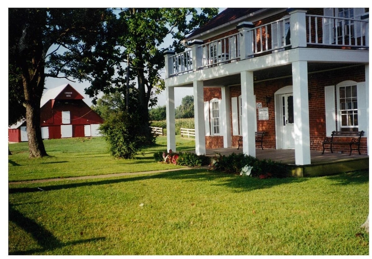 Updated - Historic home/barn owned by Bill Cross family since 1856. In our previous site, we hosted 250 bookings and 1500 guests. We have 3 full bathrooms/4 bedrooms, smart TV's. High speed internet. Sleeps 15+portable crib. Fully equipped kitchen. coffee maker+ coffee), washer/dryer, AC. Trails, fishing pond. We've proudly hosted over 1,200 guests and it would be our pleasure to host you. Wood burning fireplace/outdoor fire pit. Rend Lake, Wineries, golf, Shawnee/Giant City nearby.