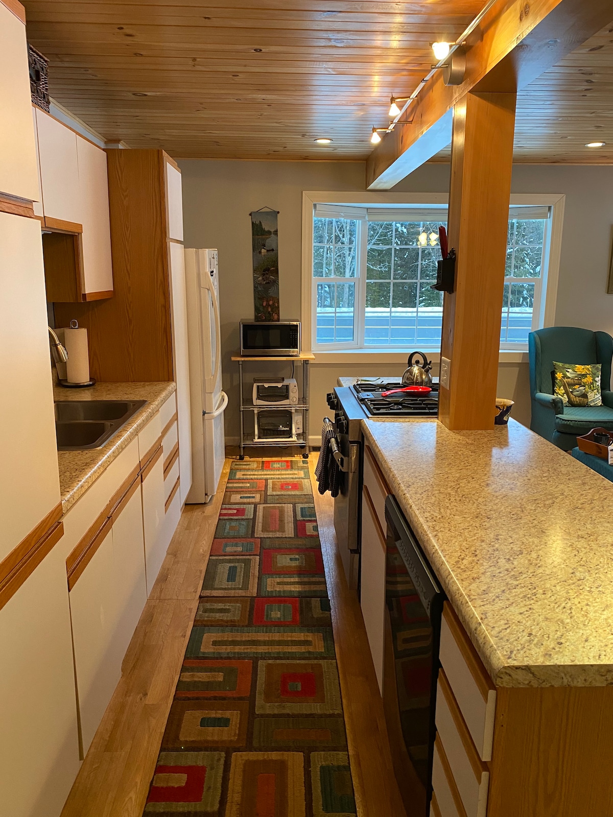 Guests love the sauna, private chef brunch or dinner, espresso maker, stocked kitchen, and everything you need for a campfire under the string lights. Walk to the village and sandy beach on Lake Pleasant (.6 miles). April is a slower month with restaurants and businesses shifting their hours. We will provide each guest with a local guide to let you know what's available. It's a great time to schedule Chef Justin for a Private Chef Brunch or Dinner (or both).