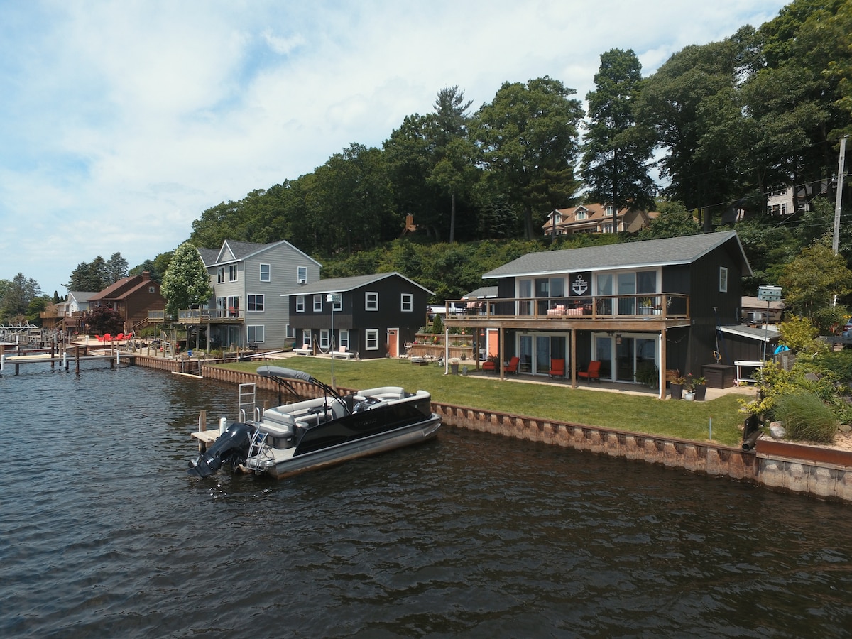 Pentwater Lakefront Getaway with Private Boat Dock