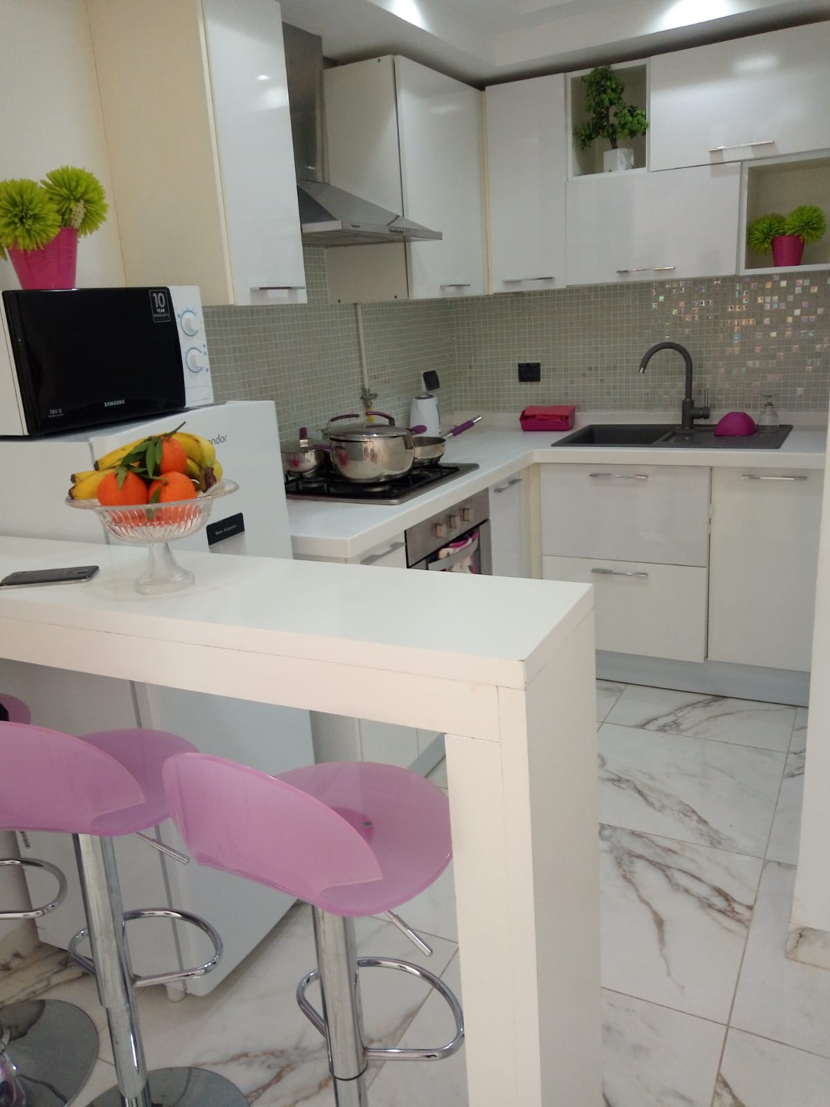 S+ 1 in a newly built residence equipped with an elevator, of very high standing, close to the beach, 2 swimming pools for adults and children. The apartment is very well-equipped: air conditioner, LED TV, linens... The day area houses a bright living room thanks to a balcony. The kitchen is equipped and opens onto a dryer. As for the night part, it houses a bedroom and a bathroom. My place is good for couples, business travelers, and families (with kids).