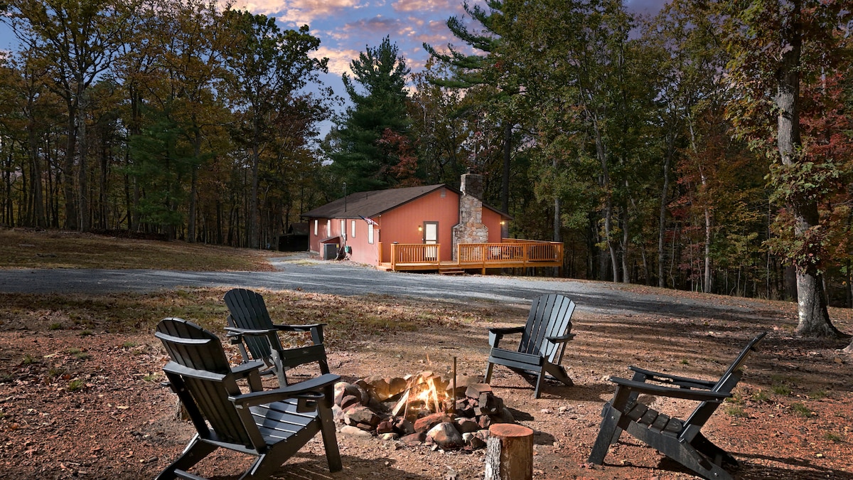 Escape to the mountains! This 3-bed, 2-bath mountaintop cabin offers breathtaking views from nearly 2,000 ft up. Perched atop Eagle Mountain on 8 secluded acres in rural West Virginia, it’s the perfect retreat. Cozy up to the woodburning stove in our airy great room where floor-to-ceiling windows frame the Cacapon River Valley. Enjoy sweeping vistas of the valley and mountains from three decks. Watch the sunrise over distant peaks, then unwind beneath dazzling night skies. Just 2 hours from DC.