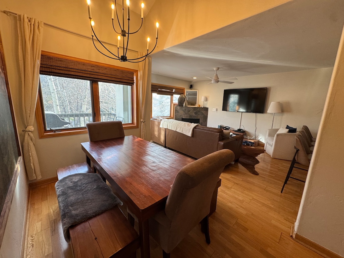 Welcome to our Rocky Mountain Paradise. Our fully remodeled condominium is perfectly located minutes from all that Vail and Beaver Creek has to offer. Two parking spaces are included but take advantage of the bus stop steps from your front door. This well-appointed space sleeps up to 7 guests. Highlights include 2 full bathrooms, ground floor private entrance, spacious family room with fireplace, high speed WIFI, smart TV's, full washer and dryer and a fully equipped kitchen. Come and enjoy!