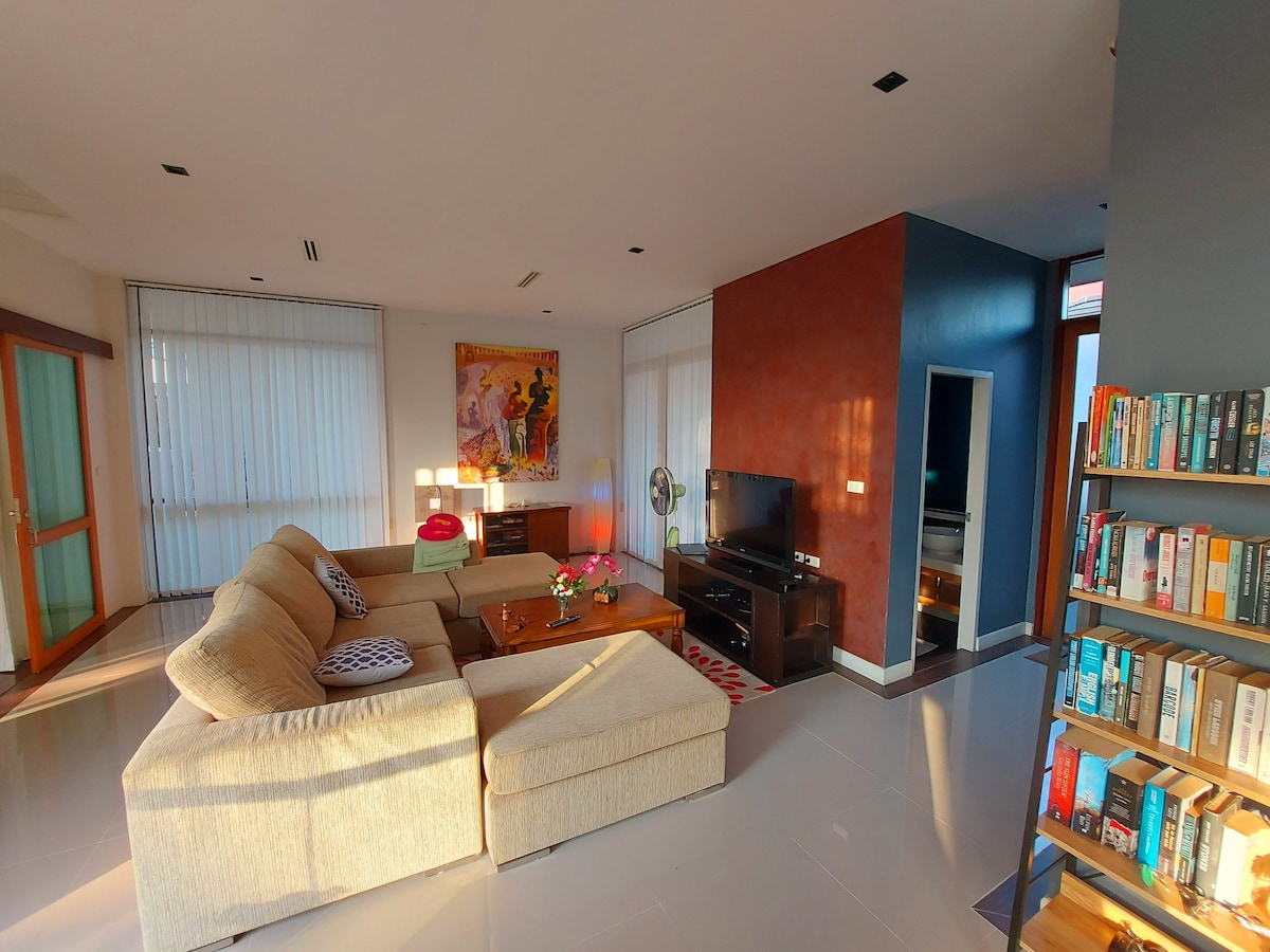 Escape the city and relax in this peaceful 3-bedroom pool villa just minutes from Pranburi beach. Areeya Retreat offers a private pool, pool table, fully-equipped kitchen, and a bright, naturally lit living space — perfect for lounging or working remotely with fast Wi-Fi. Surrounded by fields and just 1.3 km from the beach road, it’s ideal for families, groups, or couples looking for comfort and calm. Enjoy 15–30% discounts for weekly and monthly stays.