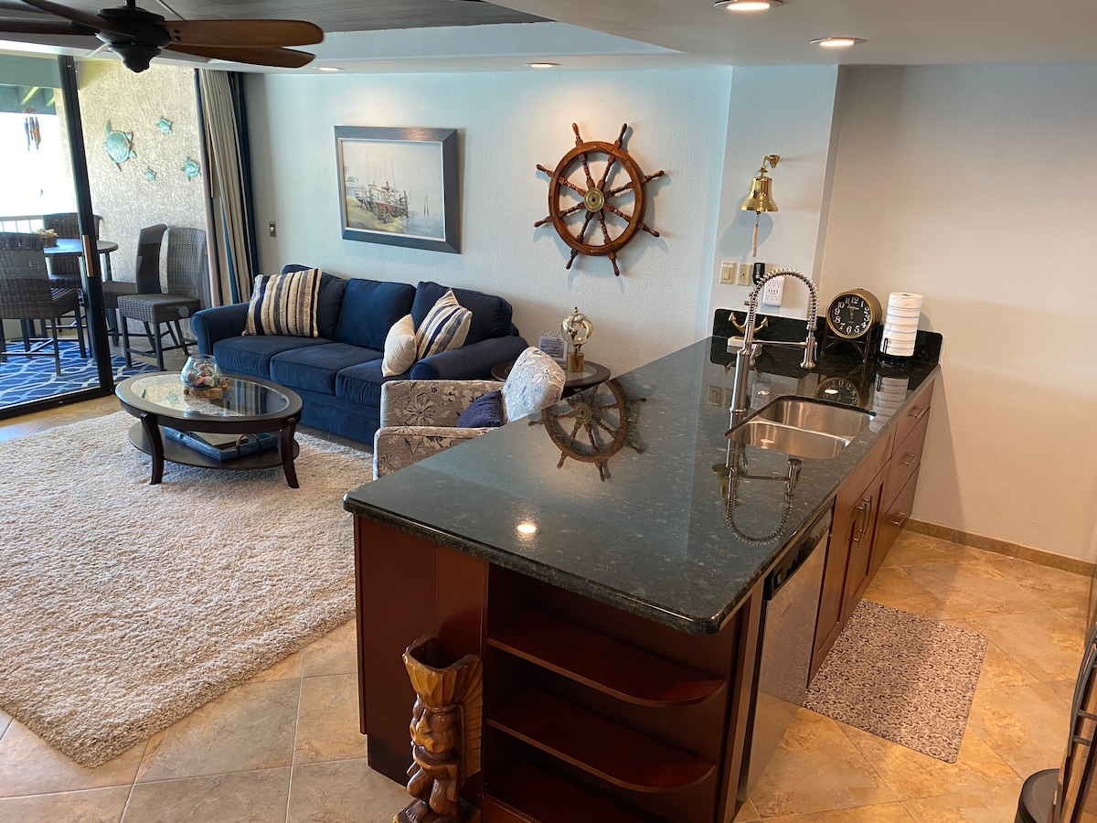 🌊Absolute direct oceanfront top floor, two-bedroom condo located in the heart of Kailua-Kona, Hawaii. Step inside to stunning ocean views from floor-to-ceiling windows and your private oceanfront balcony — welcome to paradise! 🌴 🌬AC in all spaces, elevator access (zero steps!), fully updated with high-quality furnishings throughout. From the balcony, watch sea turtles in the tide pools below, spot dolphins just offshore, and enjoy spectacular sunsets — all just steps from the ocean.