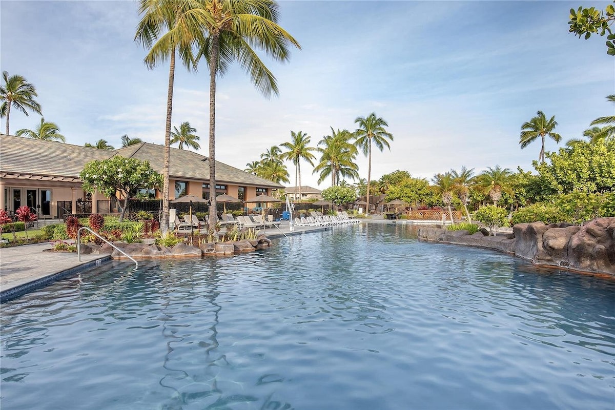 Tropical Golf-Course Oasis & Lagoon Views – Kailua-Kona, HI Start with coffee on your lanai beside a peaceful lagoon, tee off at the nearby golf club, lounge by sparkling pools, snorkel Kona’s clear waters, and unwind with a sunset breeze.