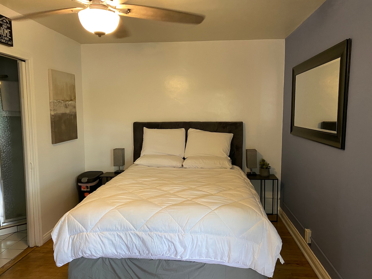 Modern Minimalist Studio — A Peaceful, Cozy Retreat This tiny yet inviting guesthouse studio is designed for comfort and efficiency. Inside, enjoy a thoughtfully equipped space with kitchen basics, central air/heat, and a smart TV. The true highlight is the "Zen-like" peacefulness of the backyard; step outside to find a quiet, serene atmosphere perfect for reflection. An ideal getaway for those seeking rest and a tranquil home base.