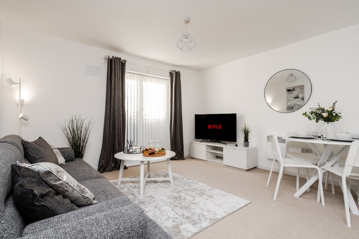 Enjoy a cosy stay at this stylish 2 bedroom apartment. With views over the waterfront, this centrally located apartment is short walk to bars, restaurants, a host of kids and adults entertainment and the local Arboretum. Close to M6 J10 and 9 motorway and Walsall train station, its location is perfect for travelling professionals, contractors and people wanting a city break.