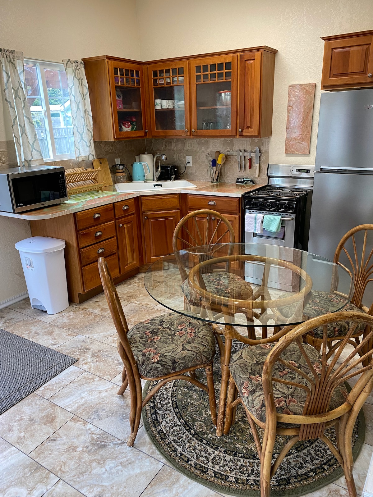 At this peaceful and centrally-located suite tucked behind a 1930’s home up a little hill, you will be close to everything important. Walk 1/5 of a mile to Old Town, where you may visit The Port of Siuslaw, many well known restaurants, art galleries and shops. Hwy 101 is a couple blocks away where our famous Pono Hukilau Restaurant is located. Walk a wee bit further to Exploding Whale Park and enjoy sitting on the river’s beach for a picnic or take a short drive to Heceta Beach for the day.