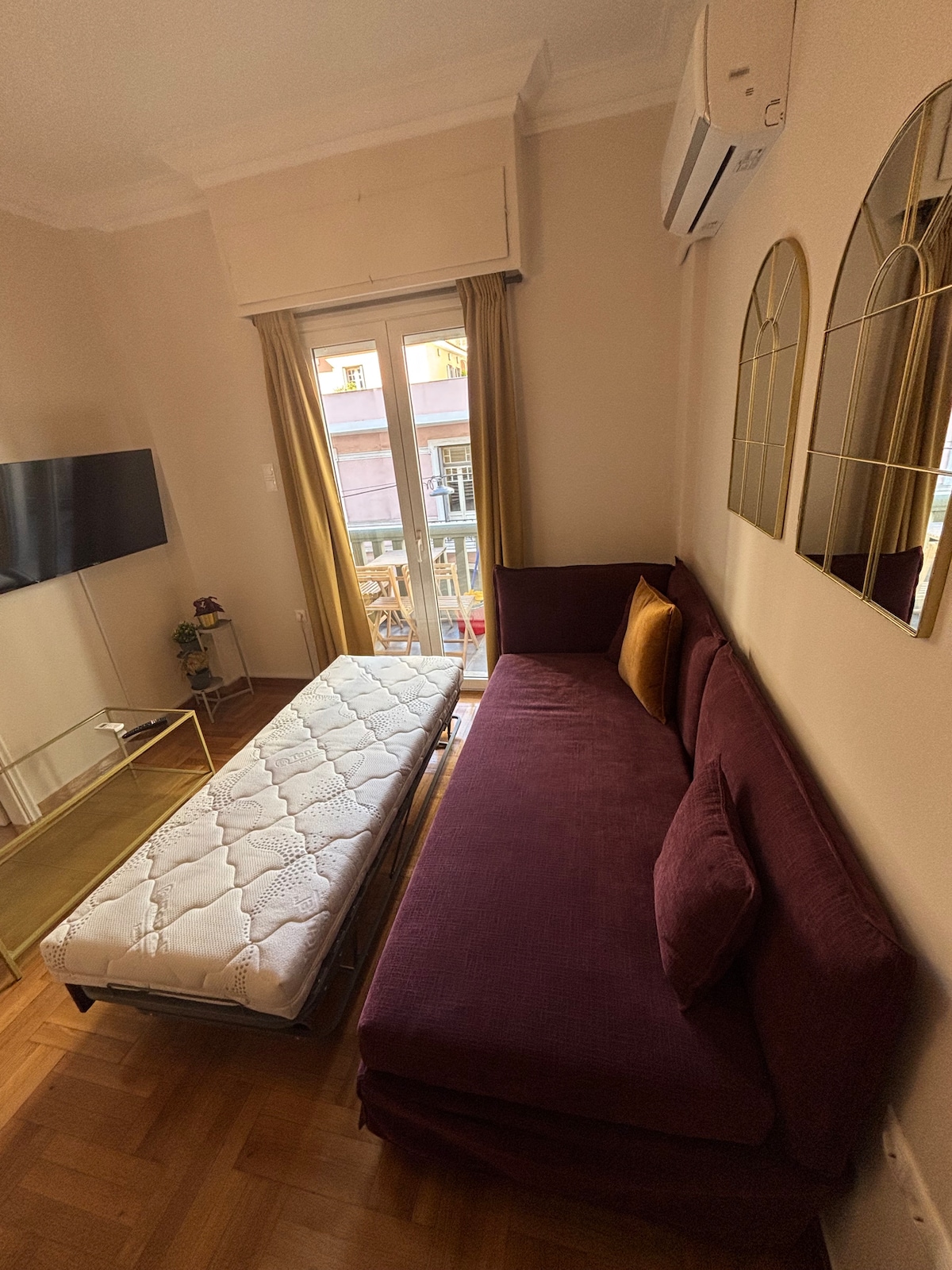 In the heart of Athens, 20 metres from the metro, there stands this bright, colourful, yet stylish, penthouse high ceiling apartment, fine example of the city's modern architecture of the 1930's, only a breath away from the classical archaeologies of the National Archaeological Museum and contemporary sightseeing attractions, ideal for touristic explorations or for just getting the athenian vibe.