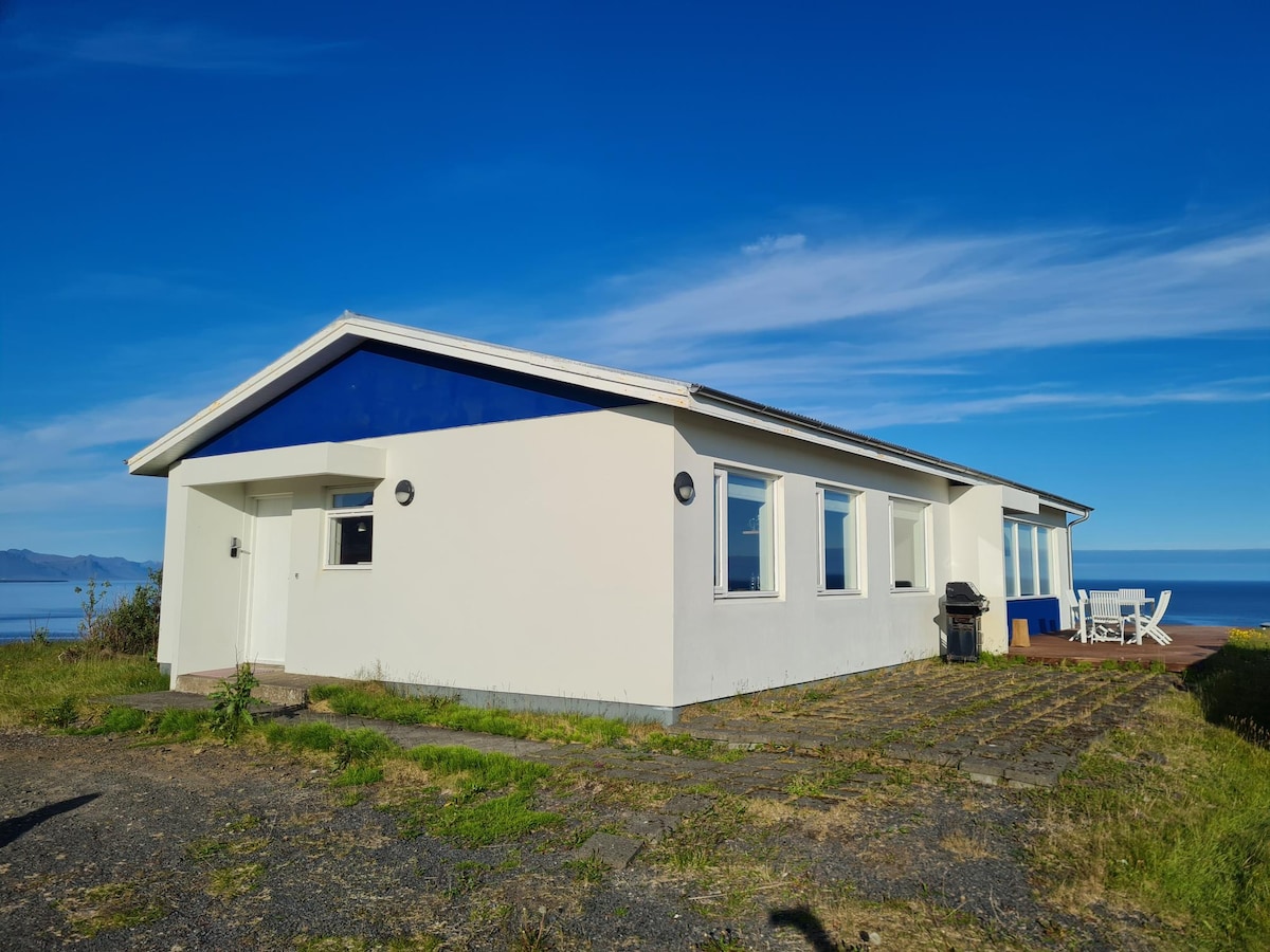 New renovated cabin (2021) is located nearby the ocean with lovely oceanview, only few miles from the historical Snæfellsjokull glacier. Good comfort in the house. It is equipped with a big fireplace and outdoor jacuzzi on the 100 sqm terrace Varieties in outdoor walking tours to experience the nature. Such as lava, glacier, mountains, caves, waterfalls and old fishing villages. Historical place with amazing geology as well as rich birdlife. The culture of this region is worth the experience.