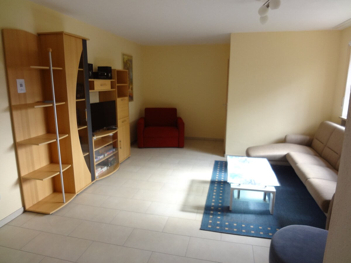Sit back and relax in this quiet, stylish apartment. Whether for a short trip by e-bike, a business trip, for the home office or as a country apartment. With the beautiful garden and the magnificent view of the nature reserve, it is ideal for nature lovers, hikers, bikers or other pleasant companions. You can fire up the electric grill, fry sausages outside or simply roast yourself in the sun. The electricity comes - of course depending on the weather - from solar energy or battery storage.