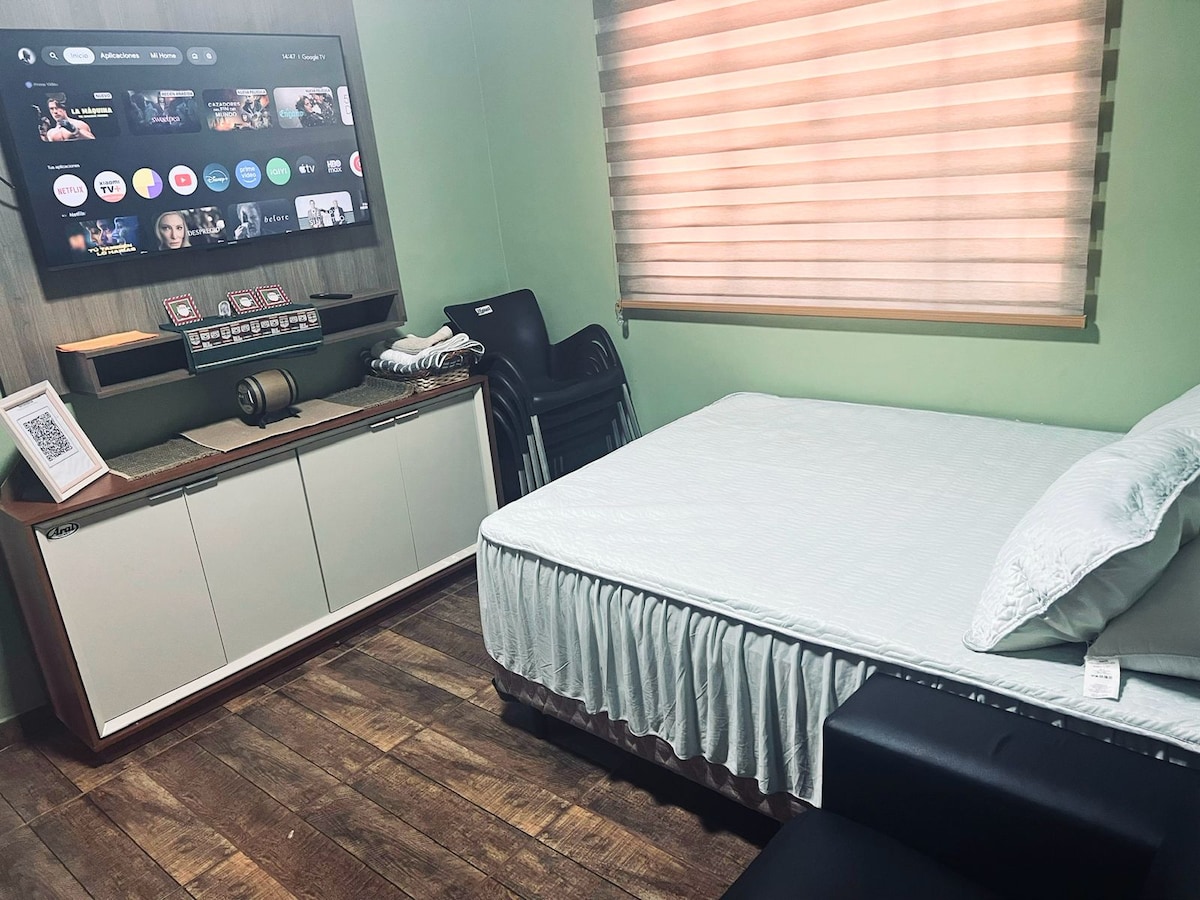 Stay in a quiet, safe, cozy and very well located place. Within a radius of 1,000 meters you will find a supermarket, gas station, bakery, pharmacy, shopping mall, smart fit, beverage distributor, pizzeria, restaurants, bus station. We provide bed and bath linens, hairdryer. Small pets allowed. Integrated space with TV/Netflix, full kitchen with utensils, blender, toaster, coffee maker, electric oven, microwave, washing machine.
