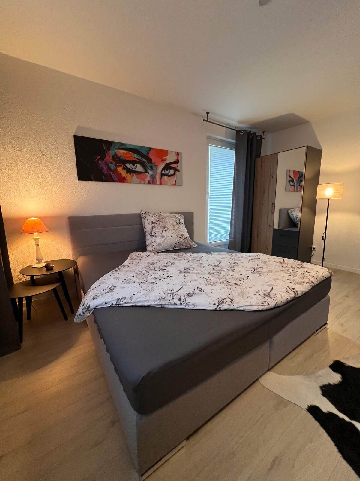 Diese moderne und stilvolle Wohnung bietet einen gemütlichen Rückzugsort in unmittelbarer Nähe zur Universität. Ideal für Studierende, Dozenten oder Besucher, die eine komfortable und praktische Unterkunft suchen. Das Apartment verfügt über ein helles Schlafzimmer mit einem großzügigen Doppelbett, ausgestattet mit hochwertiger Bettwäsche, um Ihren Schlafkomfort zu gewährleisten.