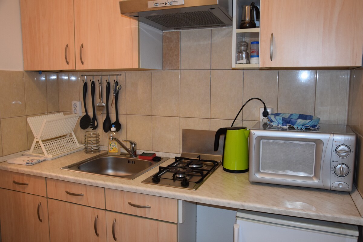 Detached 20 m2 house, fully equipped. Friendly little nest, our guests love it. Private bathroom, equipped kitchen, private terrace. Basically, it can be rented for two people, but it can also be rented for one person on request, in this case + 25% surcharge - individual pricing. Minimum 5 nights in high season. In addition to the accommodation fee, the local tax is 450 HUF/person/day. Air-conditioned apartment. Air-conditioning fee 3,000 HUF/day - if required, payable separately.
