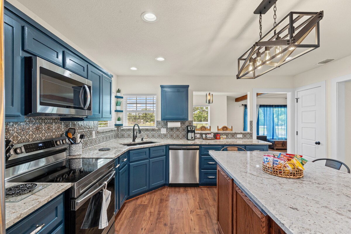 Escape to this relaxing, stylish, and pet-friendly retreat in a golf course neighborhood near Lake Granbury. Enjoy stunning sunrises, cozy nights by the fire pit, and a playful loft space. Located just 1.5 miles from a public boat launch, there’s room to park your boat trailer. Explore historic downtown Granbury, filled with shops, restaurants, wineries, and entertainment. Perfect for couples, families, or friends, this modern getaway blends comfort, charm, and convenience. Book your stay today!