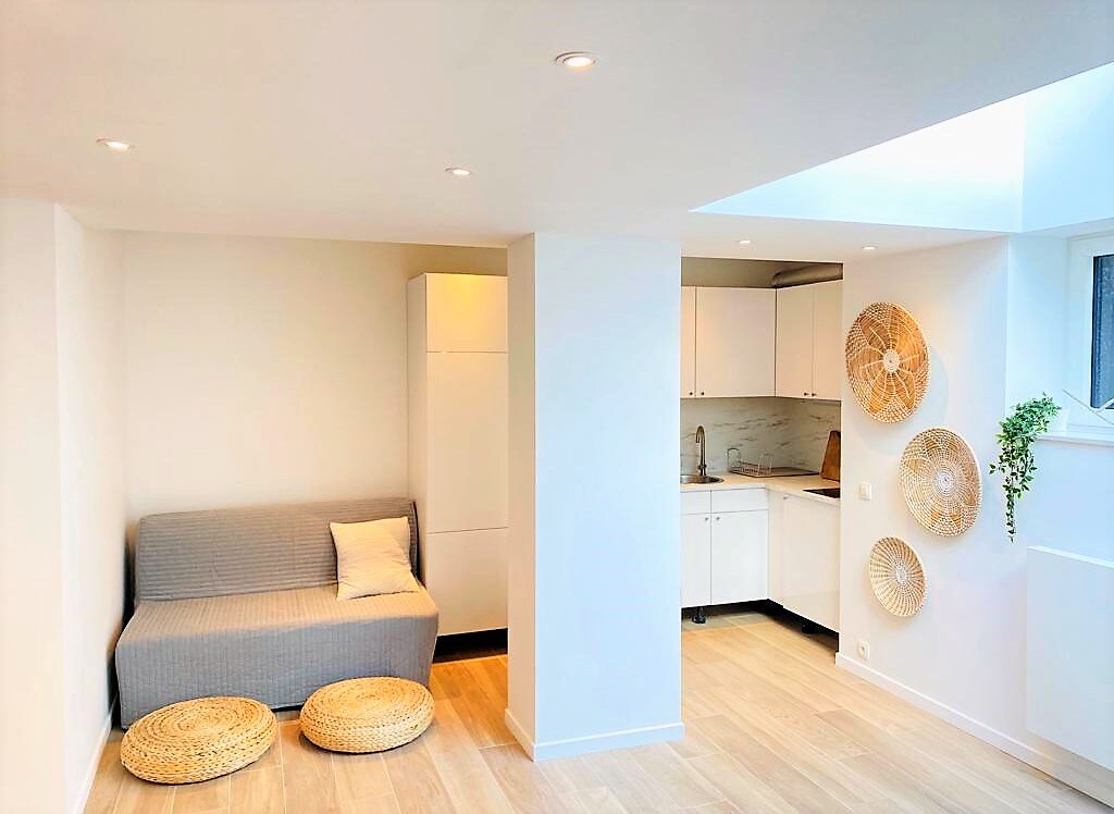 This charming 55-m2 studio is located at the end of a quiet blind alley. Decorated with taste, it comprises a bedroom, a living room, a kitchenette and a bathroom. Nice and quiet atmosphere, perfect for working or resting. In the countryside and very close to Brussels’ Grand Place (20 km), Louvain-La-Neuve (15km) or Waterloo (6 km). Just a few minutes drive away from Genval Station.
