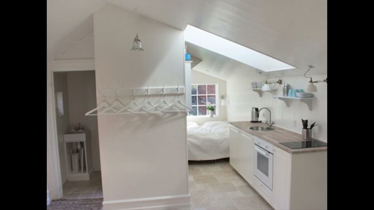 Lovely bright annex with private entrance and terrace, located in quiet surroundings a few minutes walk to nature, beach, city and harbor. The annex is 35 m2 perfect for couples. (possibility for a small child on the sofa.) Includes bedroom, bathroom with walk-in shower, living room, and kitchen in one. Private terrace with barbecue. The house is non-smoking. Pets not allowed