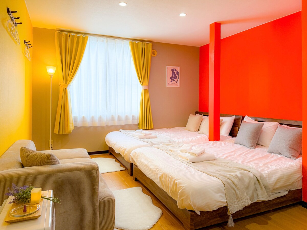 This accommodation is conveniently located within a 10-minute walk from Susukino Station and the center of the city. All guests can enjoy it. There are many restaurants in the downtown area, making it suitable for families and groups. Parking ・ Advance reservation by email for 2 vehicles (free) * If the parking lot is full, please use the nearby paid parking lot Contact us if you'd like to reserve a parking space. Please note that we may not be able to accommodate your request depending on availability. Spacious 100 ㎡, only one room per floor, the entire 2nd floor is rented The 2 bedrooms can accommodate up to 10 people. ・ 1 living room + 2 bedrooms (3 double beds, 2 full sized beds) - Elevator included - WiFi available Fully equipped for long-term stays Contactless smart check-in♪ Entrance and each floor are fully equipped with alcohol disinfection