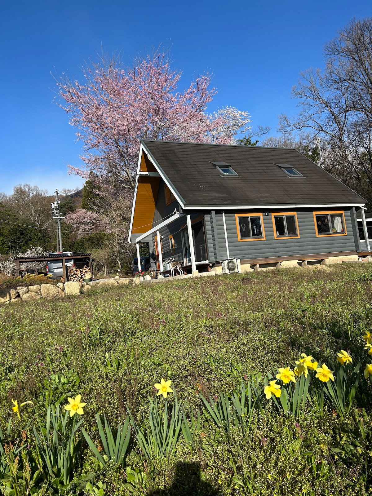 森林に囲まれたログハウス・無料送迎可・600㎡庭つき・ホームシアター・リトリート・ペット可・移住相談
