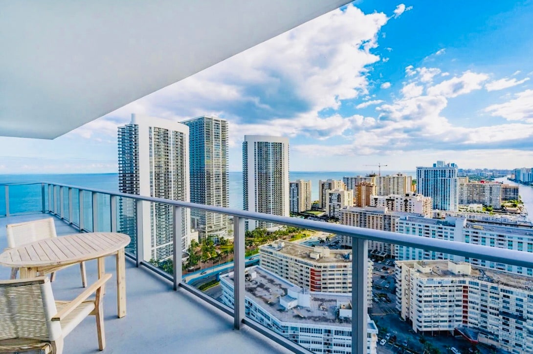 Hollywood Florida oceanfront condo on the 38th floor with panoramic views of the Atlantic Ocean and Intracoastal Waterway. Located on Ocean Drive near Miami & Fort Lauderdale attractions, this luxury stay is perfect for couples, families & digital nomads. Enjoy pools, gym, spa & private beach service. Relax on your oversized balcony and experience the best of Florida’s coast. Book your Hollywood FL escape today! 🌊✨
