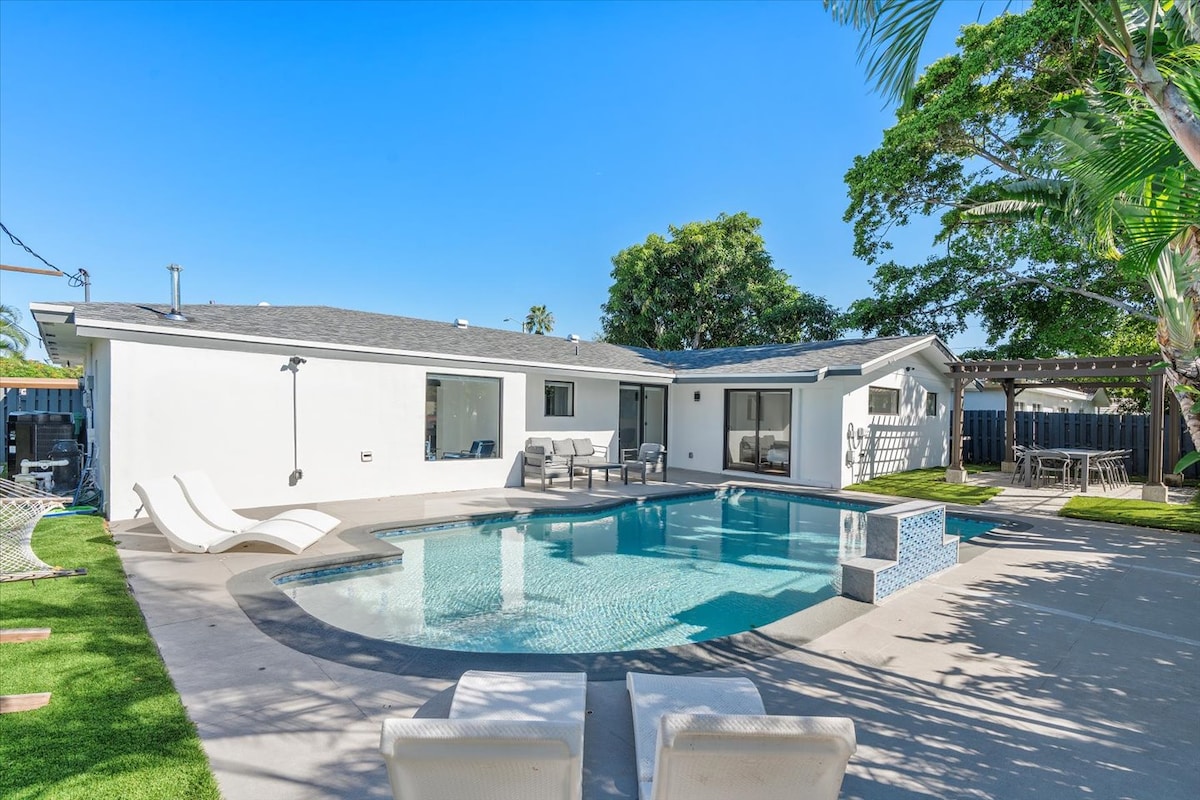 Escape to this family friendly home located in Fort Lauderdale. Conveniently 10 minutes from the airport and 7 miles from the beach, this stylish property offers the perfect blend of luxury and convenience. Inside, enjoy sleek, welcoming colors with spacious living areas and inviting interior. Step outside to a beautifully landscaped backyard with a private heated pool, outdoor dining for the family, and even some cornhole while you wait for your hot dogs off the grill! Your paradise awaits!