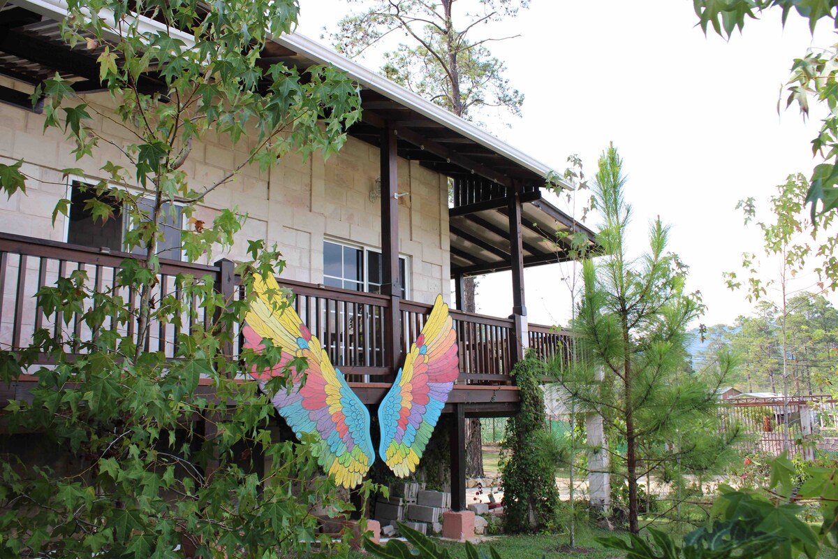 Disconnect from the daily hustle and bustle and recharge your batteries in this spacious chalet, built with limestone and wood, with a unique and elegant design, ideal for stays for individuals, couples or families in Valle de Angeles, Honduras. Get inspired by mountain views, work comfortably from home (WFH) in a serene, reflective space away from the city. 10 minutes from restaurants and shops, 15 minutes from the tourist town of Valle de Angeles and 30 minutes from the capital, Tegucigalpa.