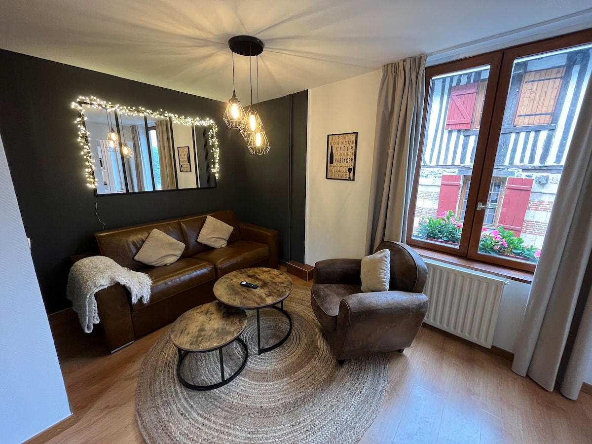 *Accommodation rated 3 stars by the Ministry of Tourism* 2 min from Sainte-Catherine Church/ 3 min from the old port /8 min from the beach /4 min from the Seine. 15th century apartment, renovated and bright in the HYPER CENTER in the historic district, on the 1st floor of a blue half-timbered building. The facades of the buildings on this street are unique and partly classified as historical monuments Rare free parking nearby Equipped kitchen/Fiber optics/Quiet neighborhood/Linen/Towels/Free NETFLIX