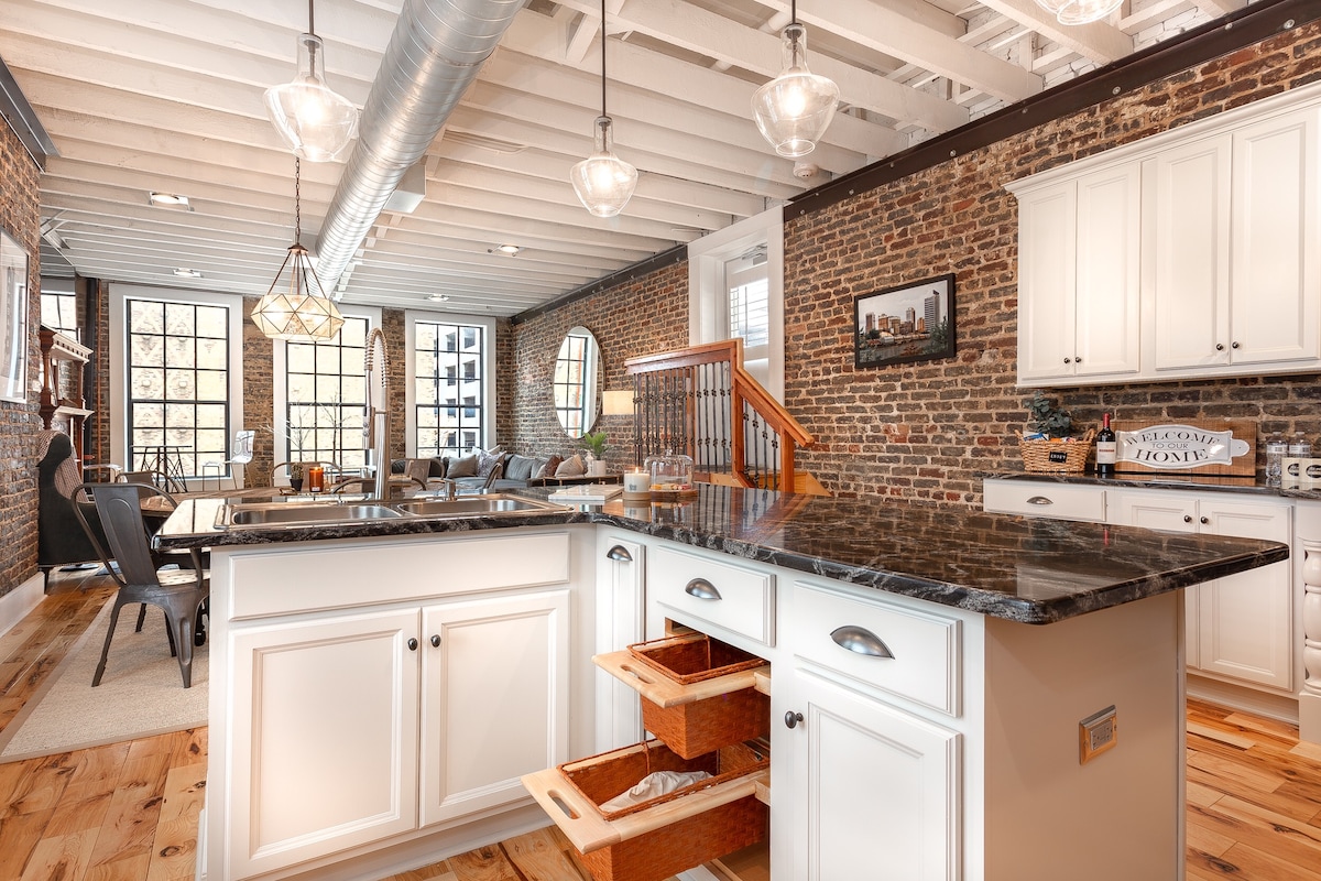 This beautiful new downtown loft overlooks the city and cobblestone streets of Morris Avenue in a newly restored historic building with a modern industrial flare. Walking distance to several bars and restaurants and convenient to any downtown location! Spacious interior with everything you need for a comfortable stay- a blend of bohemian and traditional style furnishings, full kitchen, bar seating, living area, bedroom with a large walk in closet and a large balcony overlooking the city!