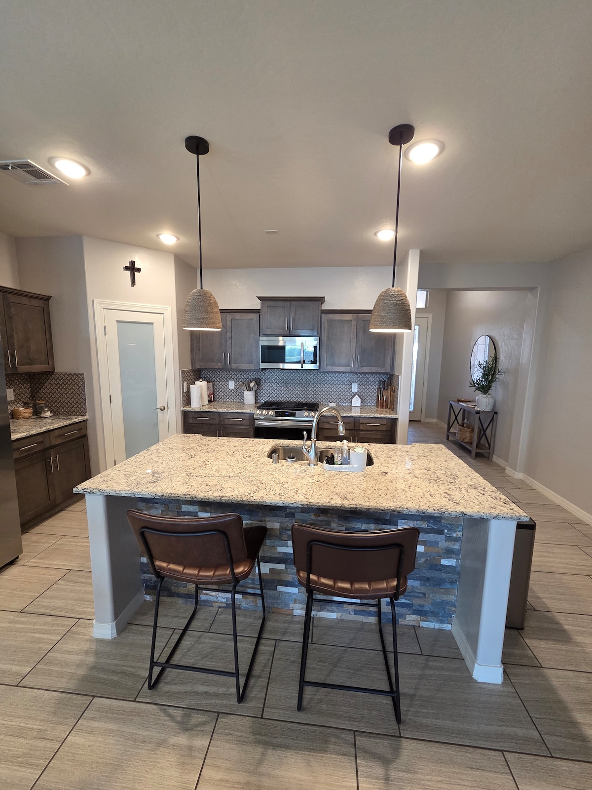 Welcome to you home away from home! This stylish contemporary home has been designed with travelers comfort in mind and is ideal for families and business travelers alike. Our goal is to provide a space where guest can work and relax at the same time. This never lived- in home is located in a quiet neighborhood with quick access to I-10, 2 min from local restaurants/Walmart, 9 min from Eastlake Marketplace/Amazon, 25 min. from the airport, Zaragoza International bridge and Downtown.