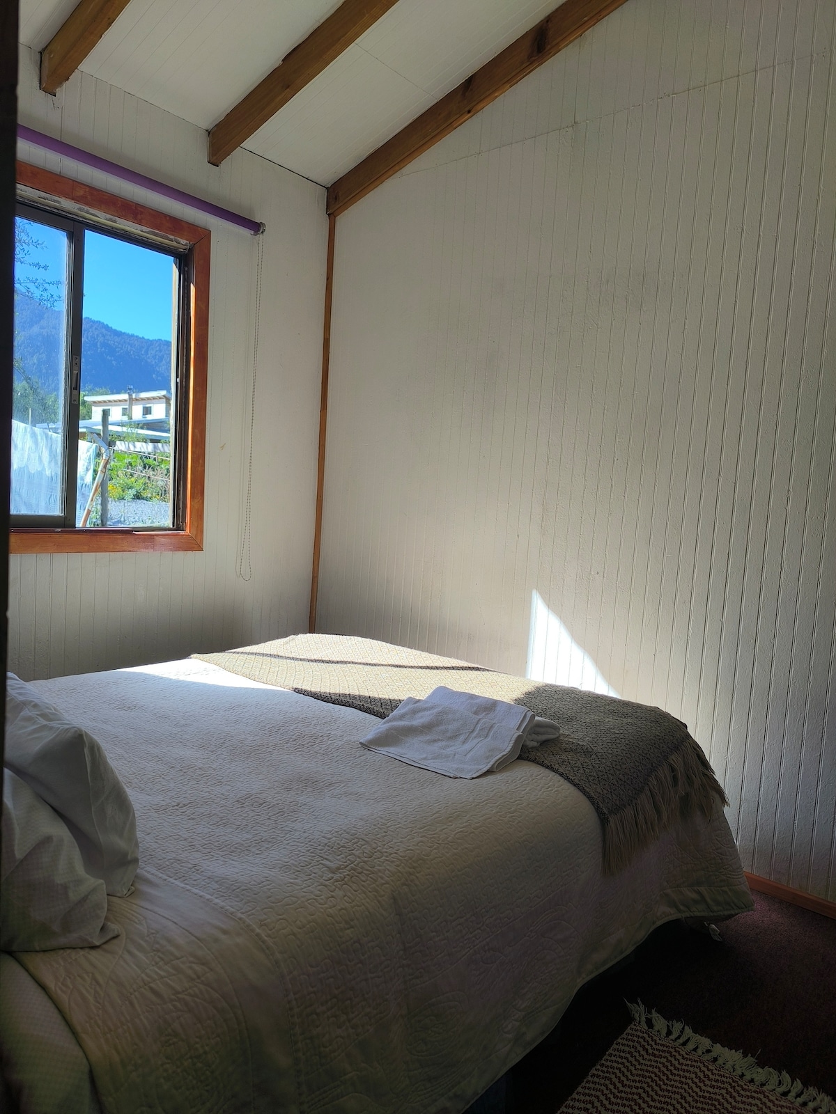 Cozy cabin with a family atmosphere, quiet and safe, ideal for resting and enjoying Hornopirén. Located just 200 meters from the bimodal route jetty, which connects Hornopirén with Caleta Gonzalo, it is an excellent option for those traveling on the Carretera Austral. Close to downtown, supermarket, typical market and waterfront, all within walking distance for added convenience. We also have a grill available